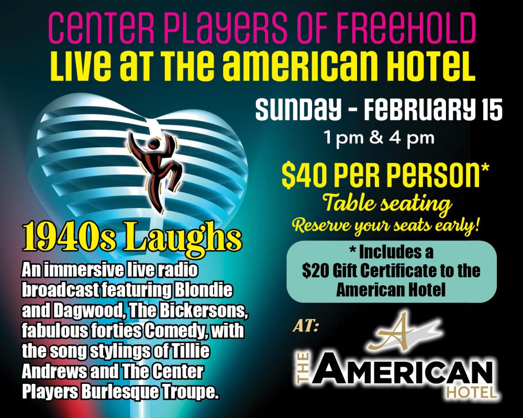 ShowsUpcoming ShowsTicketsFirst Time PurchaserReturning PatronSupport UsDonateSponsorsAdvertiseSPONSORSThanks to our partnering businesses and organizations for helping us bring quality theatre to downtown Freehold.What's NewSubscriptionsCalendarPlay Readings at The AmericanNewsGet InvolvedVolunteerJoin Our Patron List